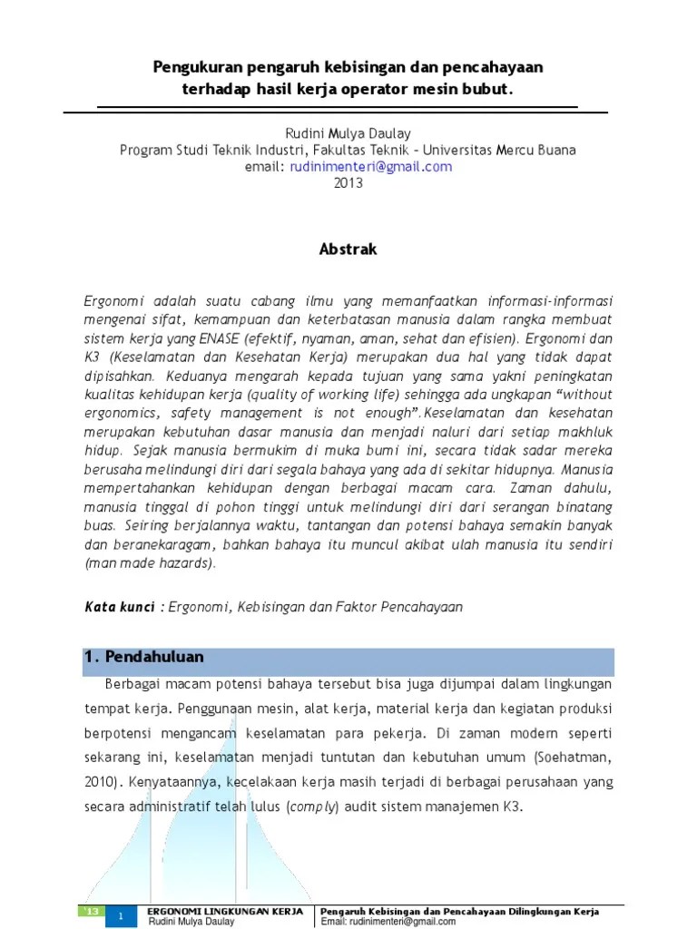 Dapat mengetahui dan menjadi informasi tentang bahaya paparan kebisingan di lingkungan kerja pada area produksi pt. Jurusan teknik industri fakultas teknik upn —veteran" yogyakarta. Gambar 4.1 data dimensi fisik meja, kursi komputer stasiun kerja . Seorang pekerja mengalami 1 jam pada 80 dba , 4 jam pada 90. Laporan ini mengenai tugas sarjana dengan melakukan penelitian yang berjudul "usulan perbaikan sistem kerja dengan.